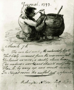 On September 1st, 1795 twenty-one Juniors from Harvard College crowded into the dorm room of Nymphas Hatch and together founded the Hasty Pudding Club. As part of the Club’s original constitution, the Members pledged to “cultivate the social affections and cherish the feelings of friendship & patriotism […] “. But there was another provision within that original charter that proved even more important to the founding. At the turn of the 18th century, Harvard dining halls were notorious for serving unappetizing meals. Taking matters into their own hands, the Pudding’s founders mandated that “the members in alphabetical order shall provide a pot of hasty-pudding for every meeting.” And so it was that each meeting of the Club was heralded by the arrival of two undergraduates lugging an enormous cast iron pot– much like the one drawn by Washington Allston above– across Harvard Yard.